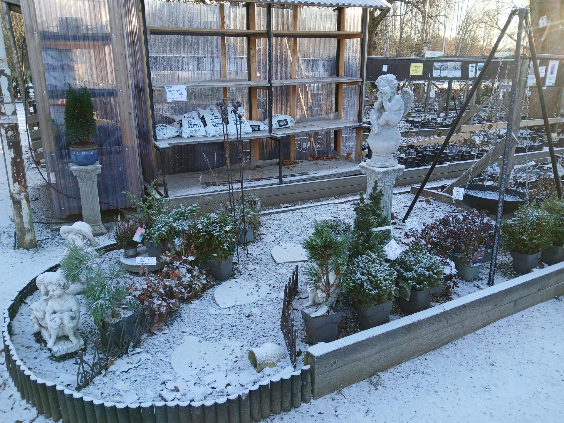 Kasvit alkavat pikkuhiljaa käydä talvilevolle ja valikoimat alkavat supistua. Koko ajan tehdään ennakkotilauksia ensi keväälle. Monia puita ja pensaita voi kuitenkin hyvin istuttaa vielä niin kauan kuin maa on sulaa. Tervetuloa siis paikan päälle katsomaan mitä löytyy!