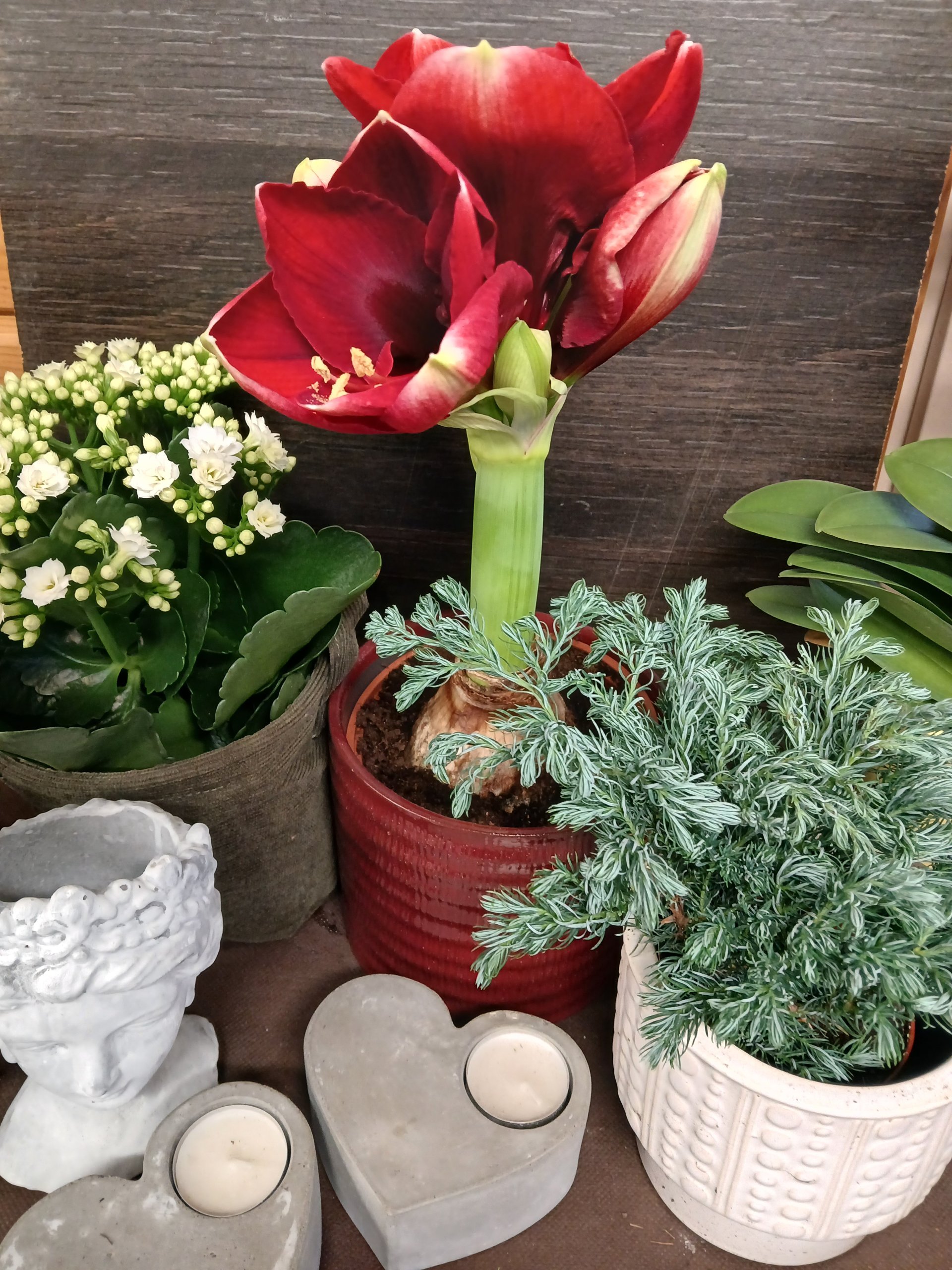 Ennen joulua myymälästä löytyvät kanervat ja muut syyskukat, pakkasten lisääntyessä myös sisäkukat muuttuvat jouluisemmiksi ja marraskuussa jo saakin atsaleaa ja amaryllistä, tulilatvojen värit muuttuvat kauden mukaan, joulua kohti oranssista valkoiseen ja punaisen sävyihin.